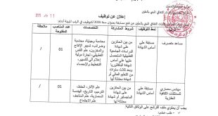 وزارة التربية الوطنية مديرية التربية لولاية قالمة مصلحة الدراسة والإمتحانات ads إعــــــلان تعلن مديرية التربية لولاية قالمة عن فتح توظيف عن طريق الإختبار المهني للإلتحاق بمناصب الشغل المبينة وفقا للجدول التالي: إعلان عن توظيف بالسلطة الوطنية لحماية المعطيات ذات الطابع الشخصي الجزائر البليدة تيبازة …