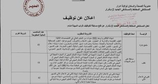أكمل القراءة »اعلان عن توظيف الإداريين بالمستشفى المختلط (المستشفى الجديد 2) بأدرار