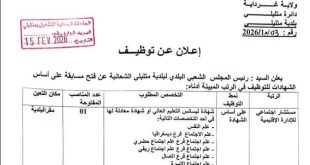 أكمل القراءة »إعلان عن توظيف بالمجلس الشعبي البلدي