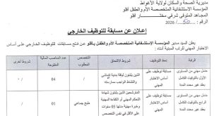 أكمل القراءة »اعلان توظيف بالمؤسسة العمومية للأشغال العمومية EPTP
