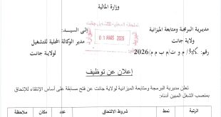 وزارة المالية المجلس الوطني للمحاسبة ads إعـلان عن تـوظـيـف يعلن المجلس الوطني للمحاسبة عن فتح مسابقات التوظيف حسب الجدول الآتي: الرتبةنمط التوظيفشروط الالتحاقعدد المناصب الميزانيةمتصرف محللمسابقة على أساس الشهاداتالمترشحون الحائزون على شهادة الماستر في الفروع والتخصصات الآتية: العلوم القانونية والإدارية أو الحقوق، علوم الإعلام …
