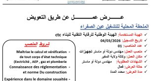 أكمل القراءة »عرض عمل بالتبادل في المؤسسة الوطنية للأشغال البترولية الكبرى ENGTP
