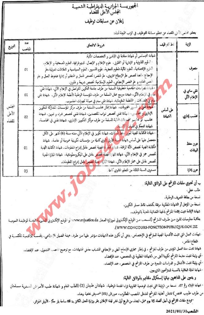إعلان عن توظيف على أساس الشهادة بالمجلس الأعلى للقضاء بمقر وزارة العدل بالأبيار بالجزائر العاصمة