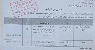 - إعلان عن مسابقة توظيف على أساس الشهادات للالتحاق برتبة أستاذ مساعد قسم “ب”