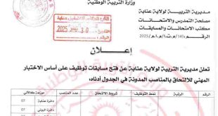 - إعلان عن مسابقة توظيف بمديرية التربية (75 منصب)