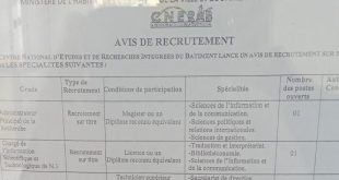تعلن مديرية أملاك الدولة لولاية ورقلة عن فتح مسابقة توظيف في الرتب المبينة ادناه