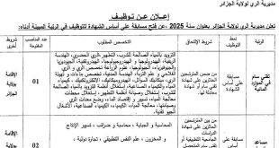 تعلن مديرية التربية لولاية تلمسان عن فتح توظيف على أساس الاختبار المهني للالتحاق بمناصب الشغل المبينة أدناه