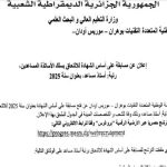 - إعلان عن مسابقة توظيف على أساس الشهادات للالتحاق برتبة أستاذ مساعد قسم “ب”