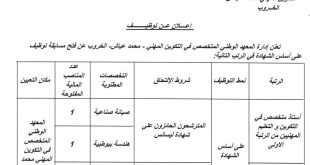 - إعلان عن توظيـف بالمعهد الوطني المتخصص في التكوين المهني