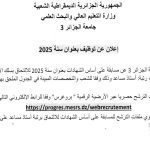 - إعلان عن مسابقة توظيف على أساس الشهادات للالتحاق برتبة أستاذ مساعد قسم “ب”