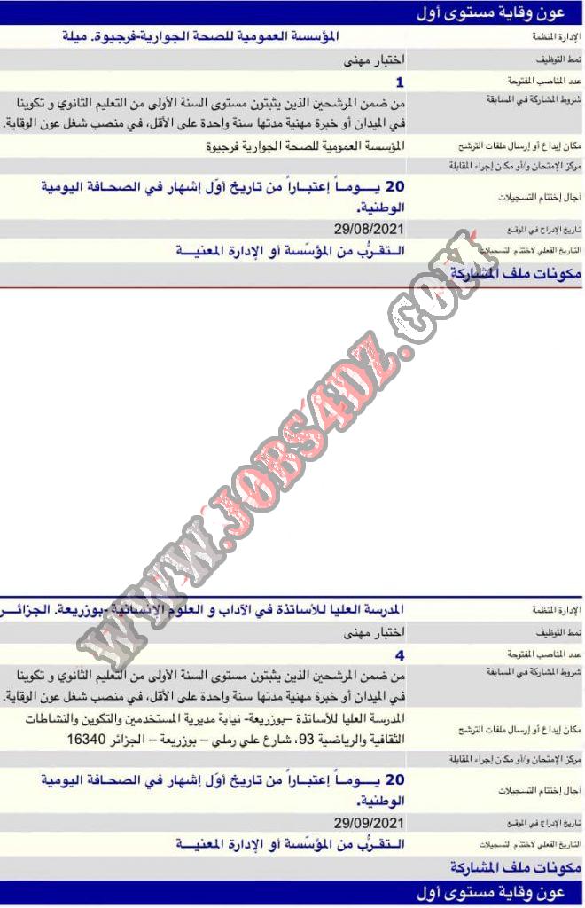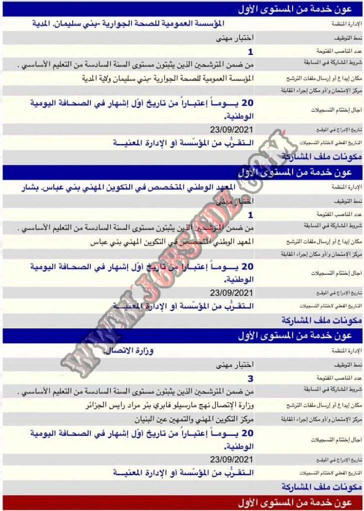 للمزيد من اعلانات التوظيف يمكنكم زيارة موقع الوظيف العمومي من هنا