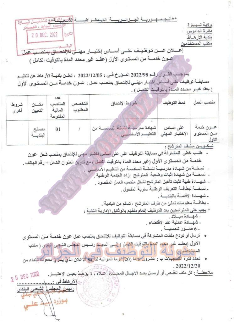عون خدمة من المستوى الاول بالتوقيت الكامل