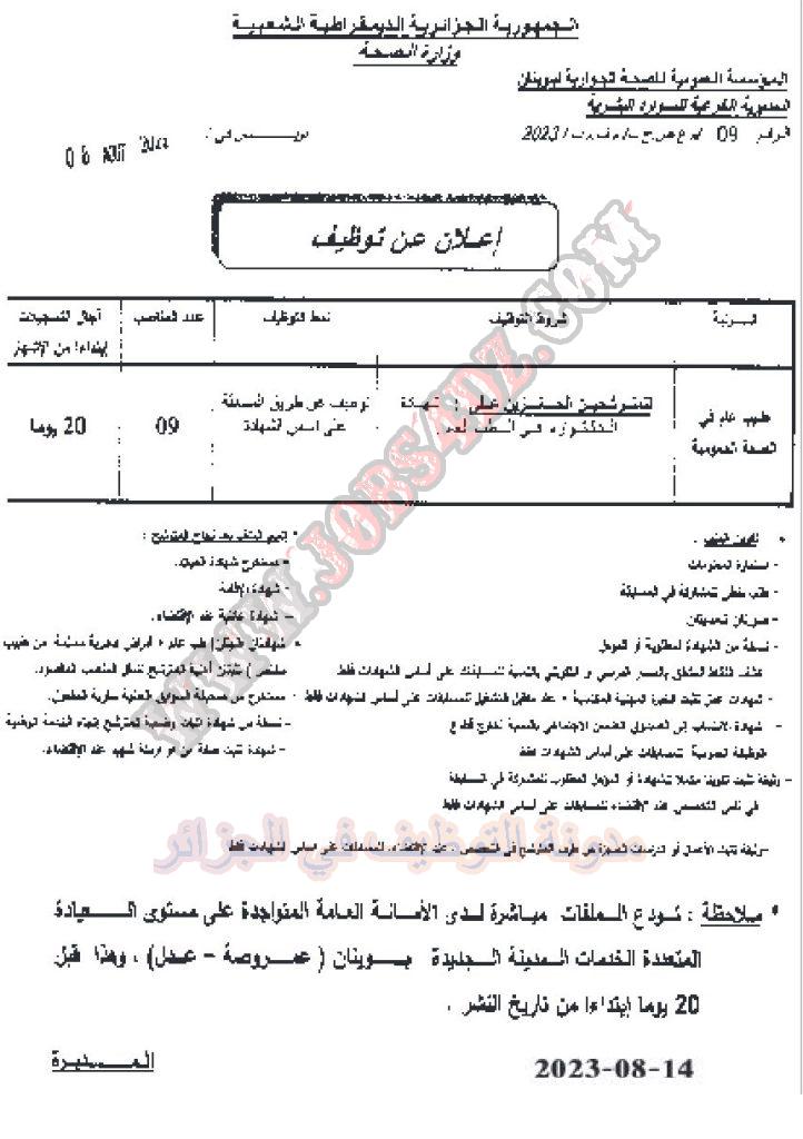 عدد المناصب 05 منصب