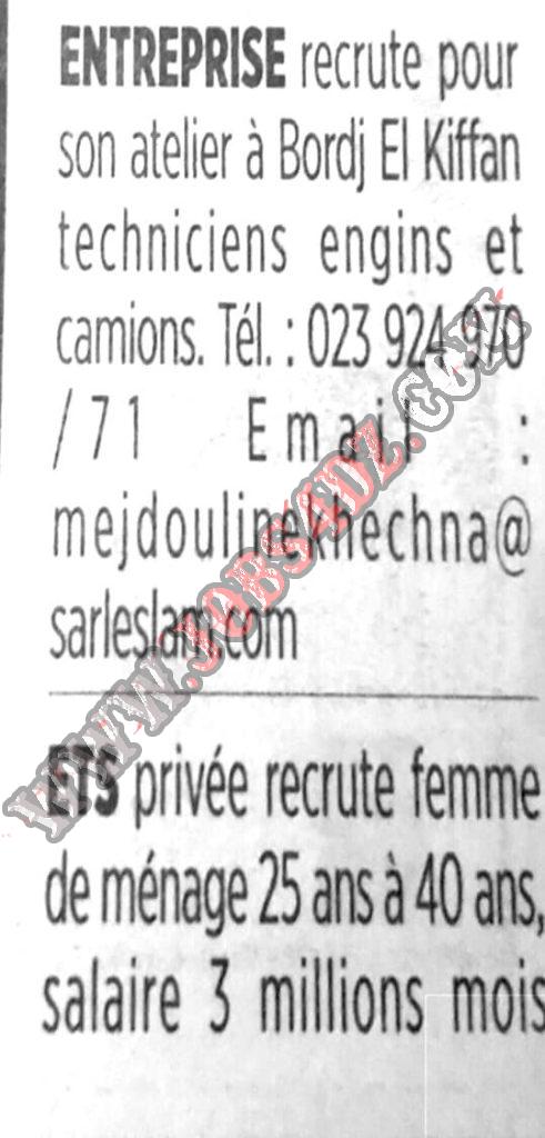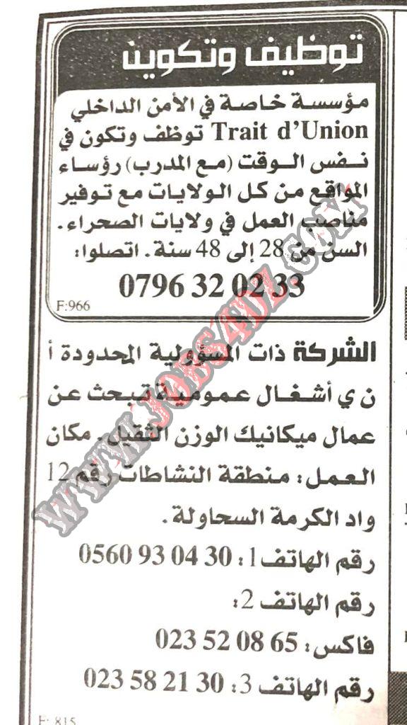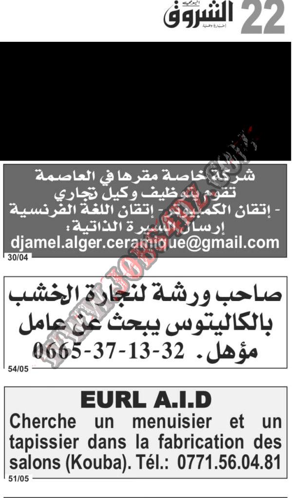 السلام عليكم متابعي مدونة التوظيف نقدم لكم في هذا الموضوع اعلانات توظيف متنوعة لدى خواص منقولة من الجرائد لنهار اليوم 15 ماي 2022