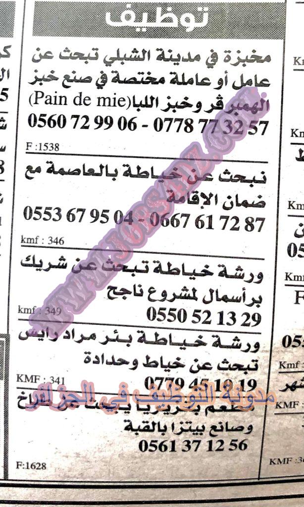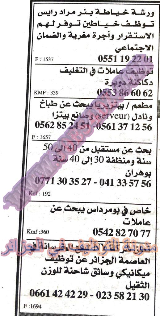 السلام عليكم متابعي مدونة التوظيف نقدم لكم في هذا الموضوع اعلانات توظيف متنوعة لدى خواص منقولة من الجرائد لنهار اليوم