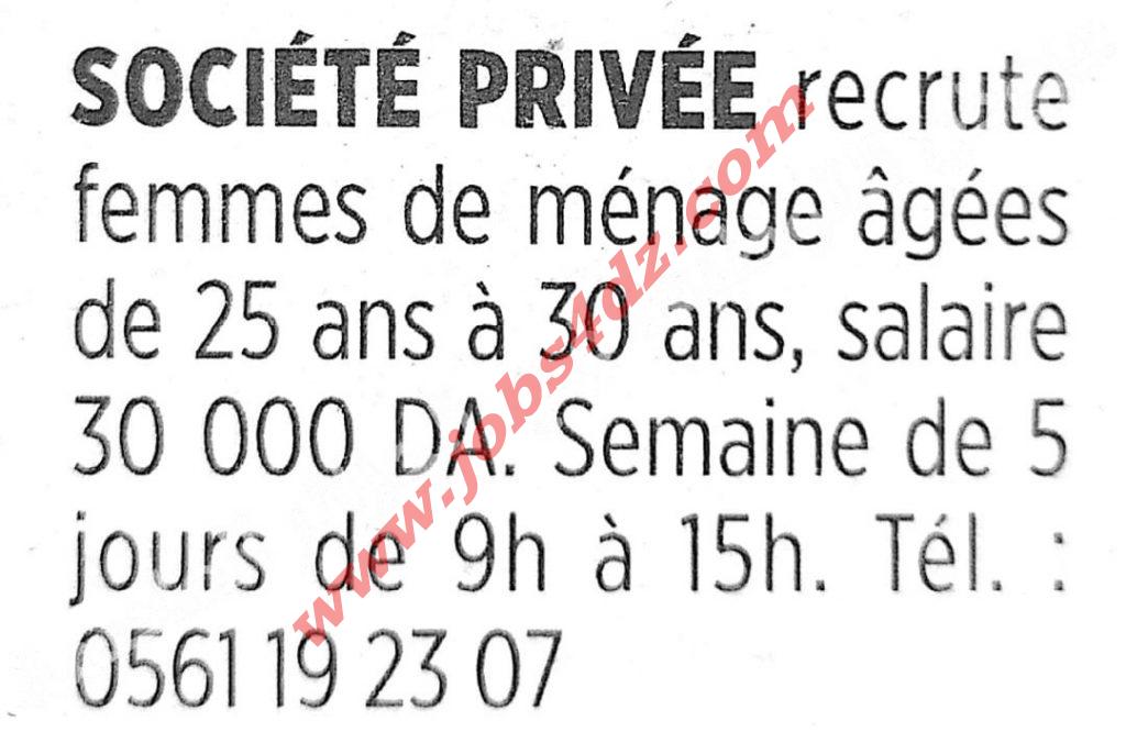 شركة خاصة بالجزائر العاصمة توظف :