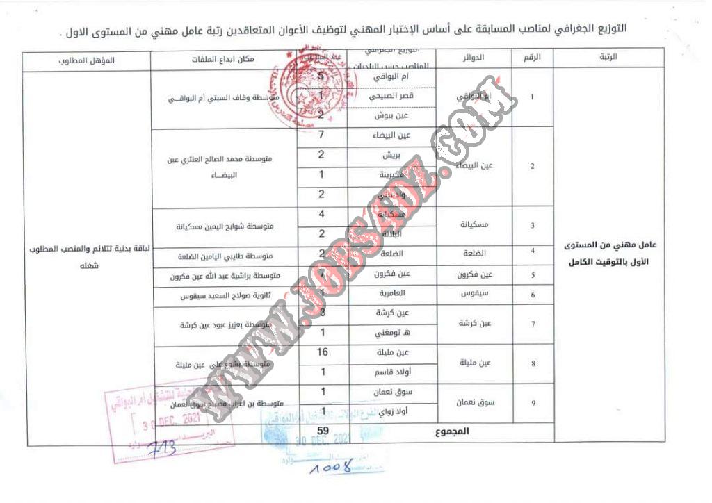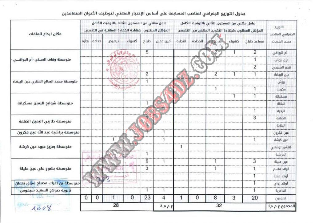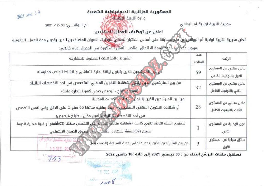 تعلن مديرية التربية لولاية ام البوقي عن فتح مسابقات لتوظيف الاعوان المتعاقدين على اساس الاختبار المهني في المناصب المبينة ادناه