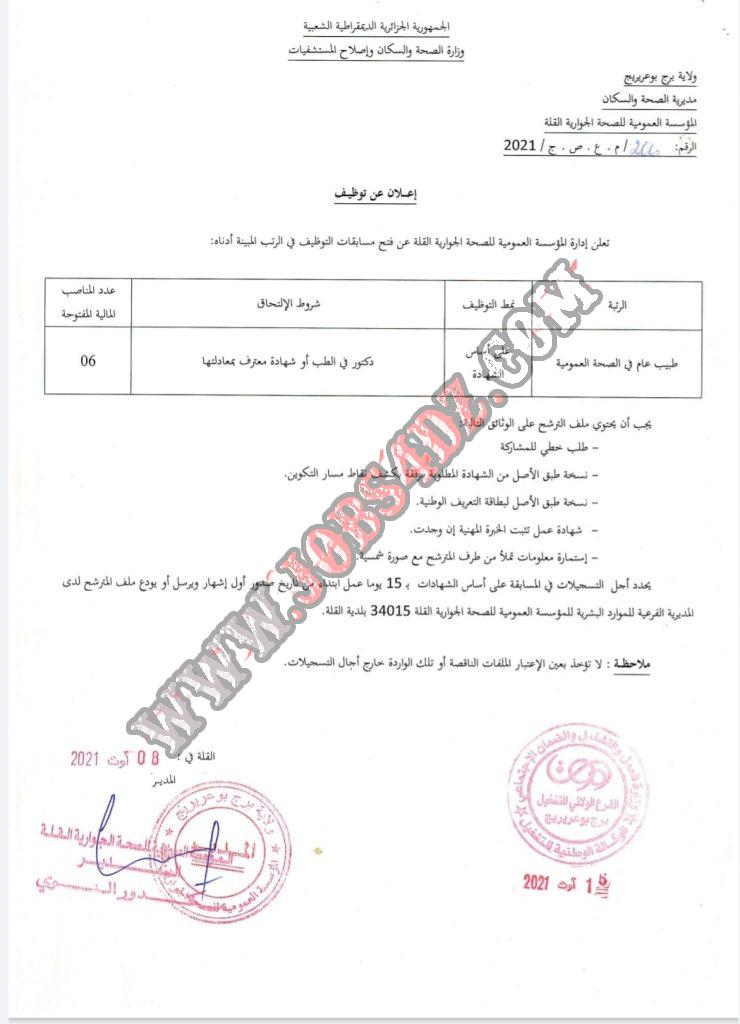 تعلن المؤسسة العمومية للصحة الجوارية القلة عن فتح مسابقة للتوظيف في الرتب المبينة ادناه