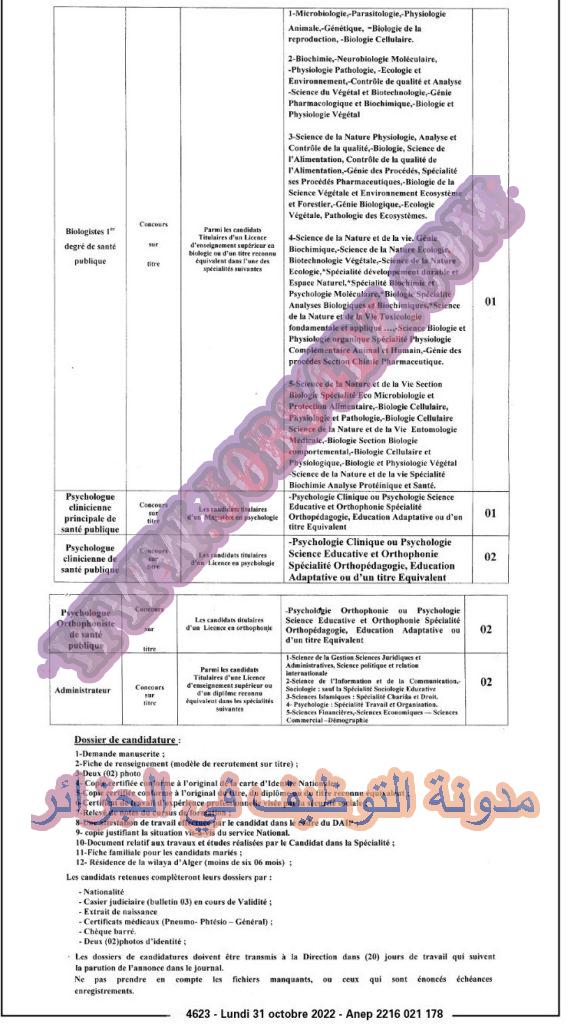 تعلن المؤسسة الاستشفائية المتخصصة محفوظ بوسبسي بالشراقة عن فتح توظيف على اساس الشهادة في الرتب المبينة ادناه