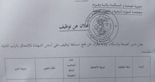 تعلن المؤسسة العمومية الاستشفائية بعين تادلس مستغانم عن فتح مسابقة توظيف في المناصب المبينة ادناه