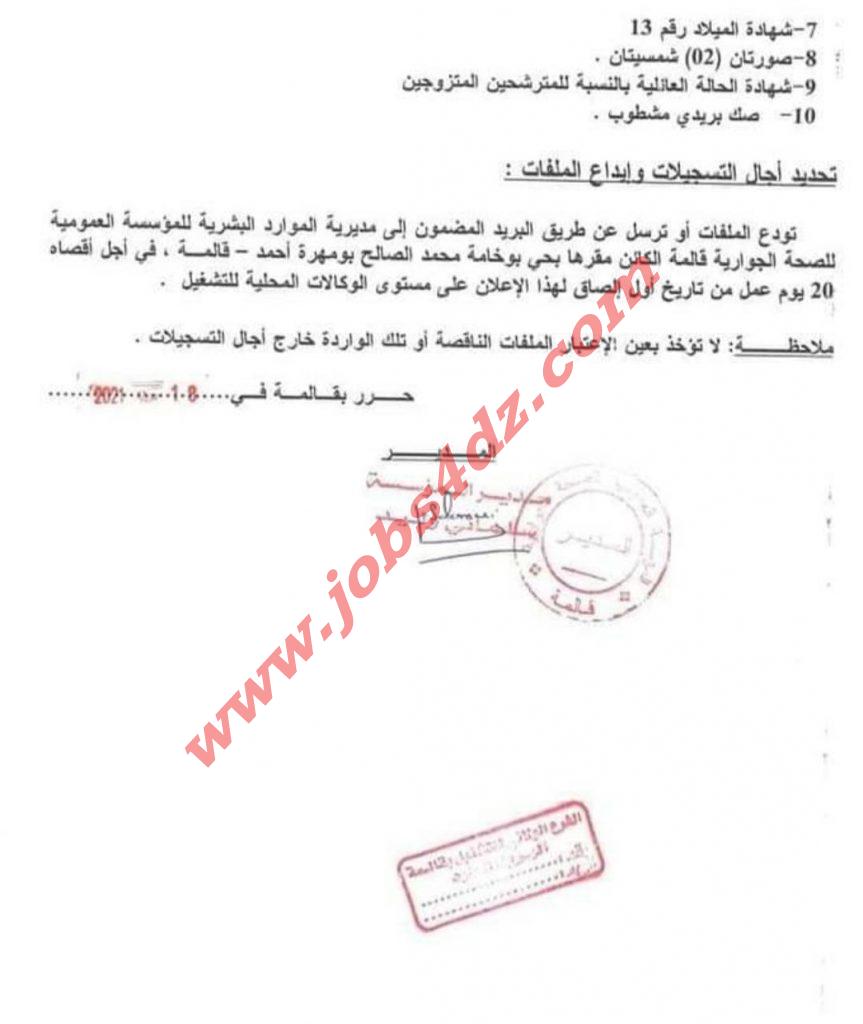 تعلن ادارة المؤسسة العمومية للصحة الجوارية قالمة عن فتح مسابقة للتوظيف في الرتب التالية