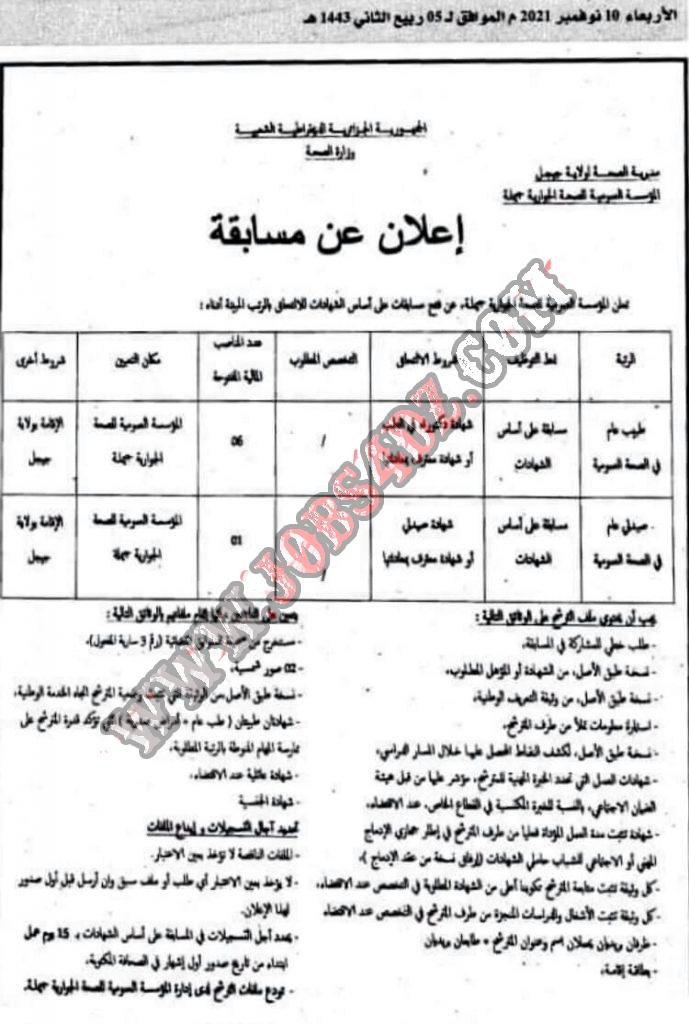 تعلن المؤسسة العمومية للصحة الجوارية جيملة جيجل عن فتح مسابقات من اجل التوظيف الخارجي للالاتحاق بالرتب التالية