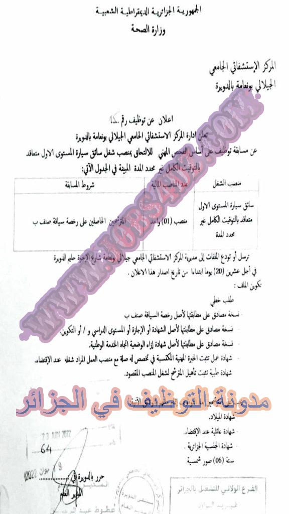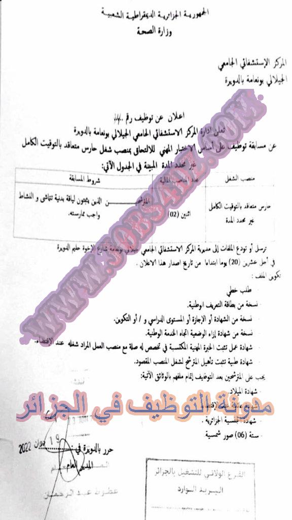تعلن المؤسسة العمومية للصحة الجوارية بعين ولمان سطيف عن فتح مسابقة توظيف على اساس الشهادة بعنوان السنة المالية 2022 في المناصب المبينة ادناه