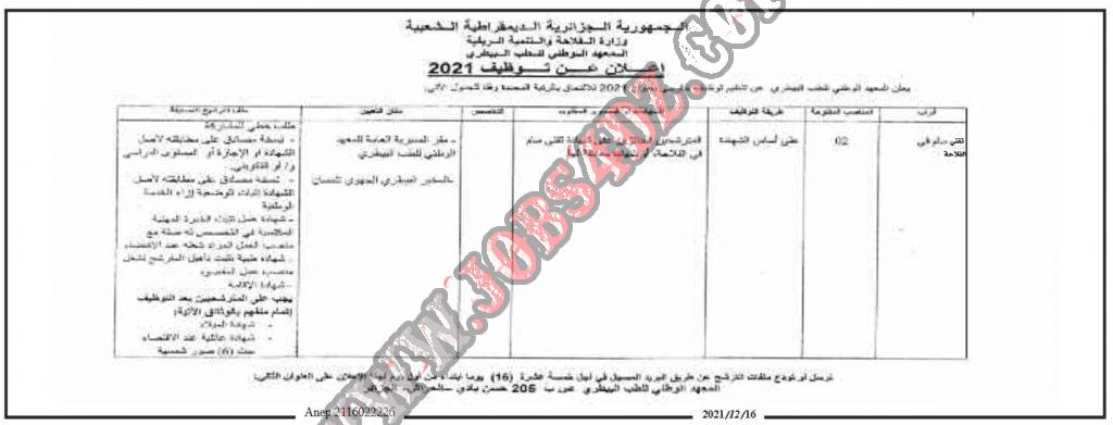يعلن المعهد الوطني للطب البيطري عن تنظيم توظيف خارجي بعنوان السنة 2021 للالتحاق بالرتبة الموضحة الدناه