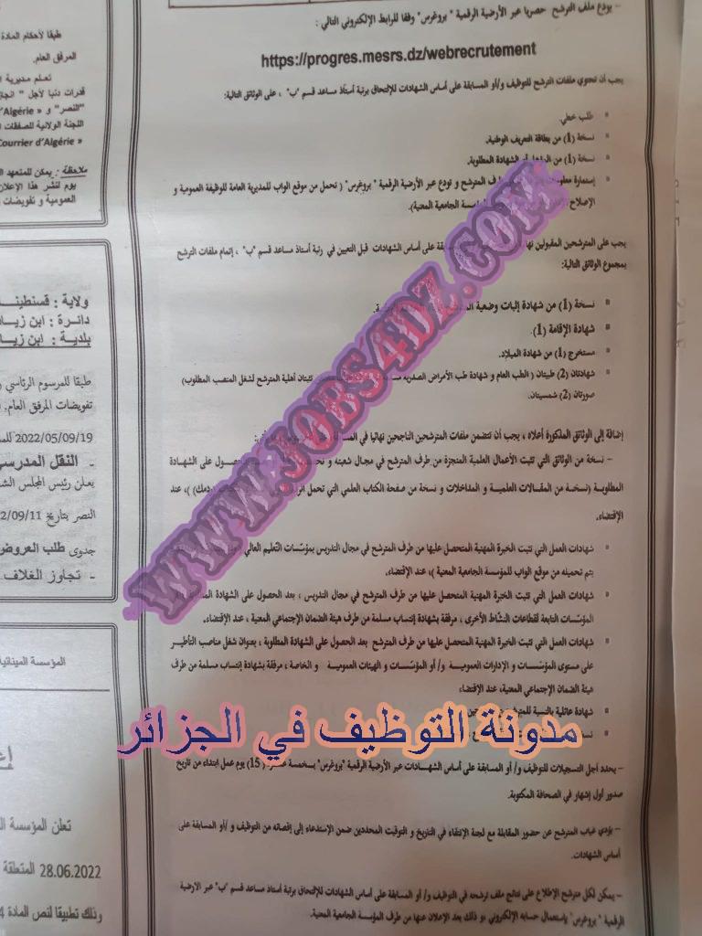 التسجيل حصريا عبر المنصة progres.mesrs.dz/webrecrutement
