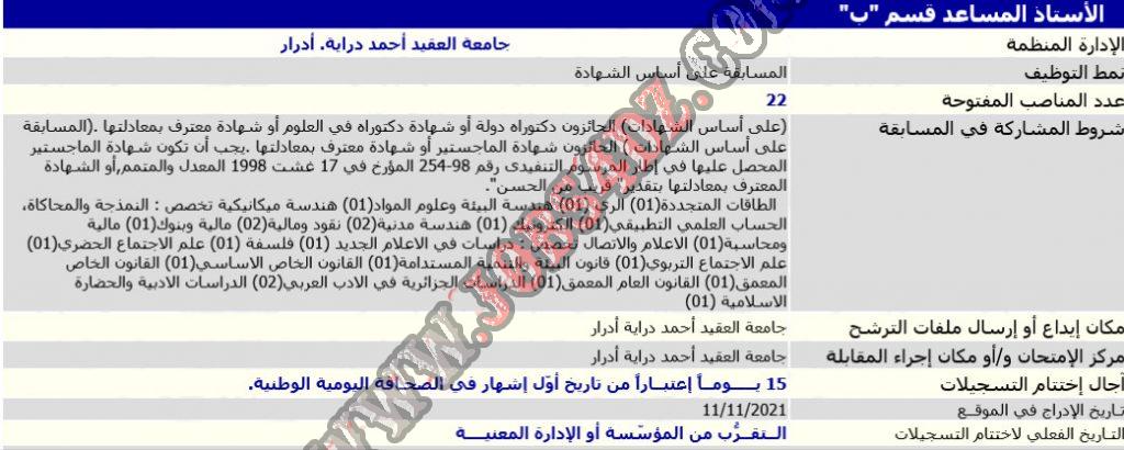 تعلن جامعة العقيد أحمد دراية. أدرار عن فتح مسابقة توظيف على اساس الشهادات في المناصب التالية