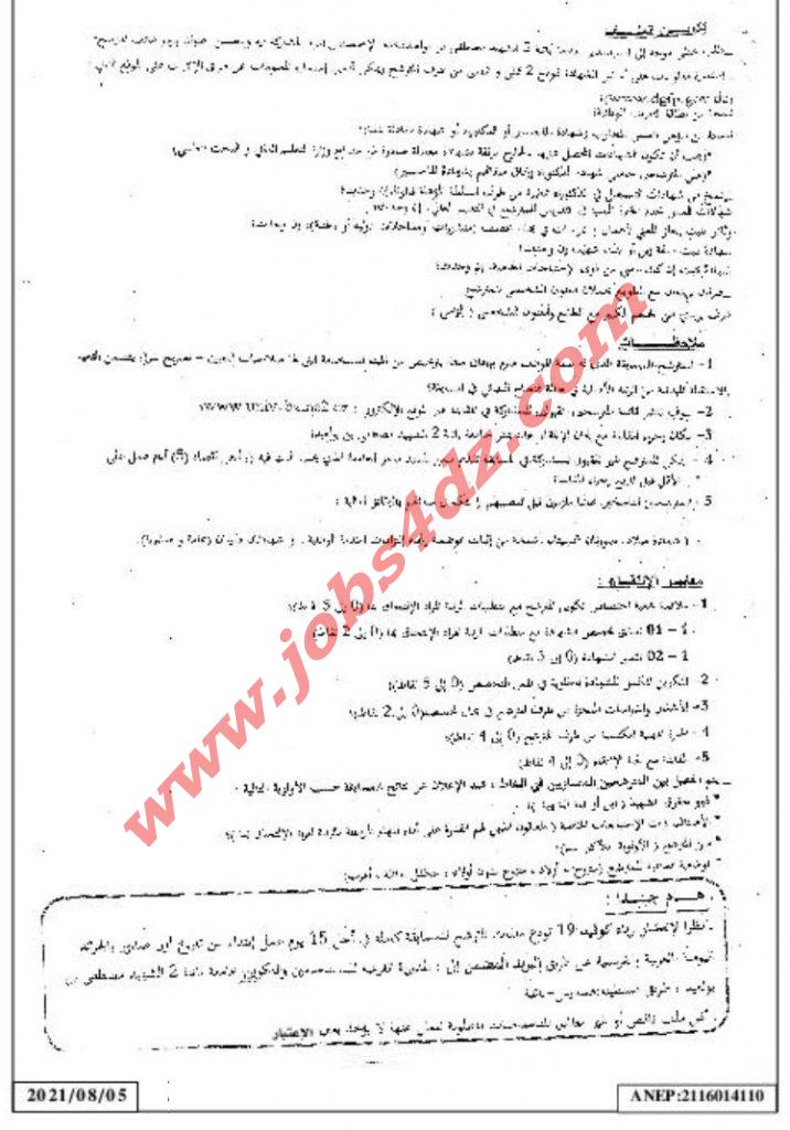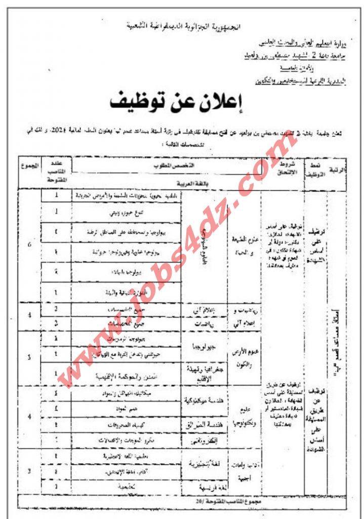 تعلن جامعة باتنة 2 الشهيد مصطفى بن بولعيد عن فتح مسابقة توظيف بعنوان السنة المالية 2021 في الرتب التالية