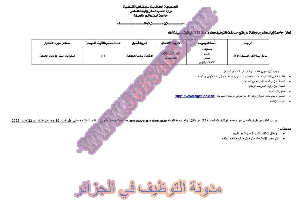 تعلن جامعة ريان عاشور بالجلفة عن فتح مسابقة توظيف على اساس الاختبار المهني في الرتب المبينة ادناه