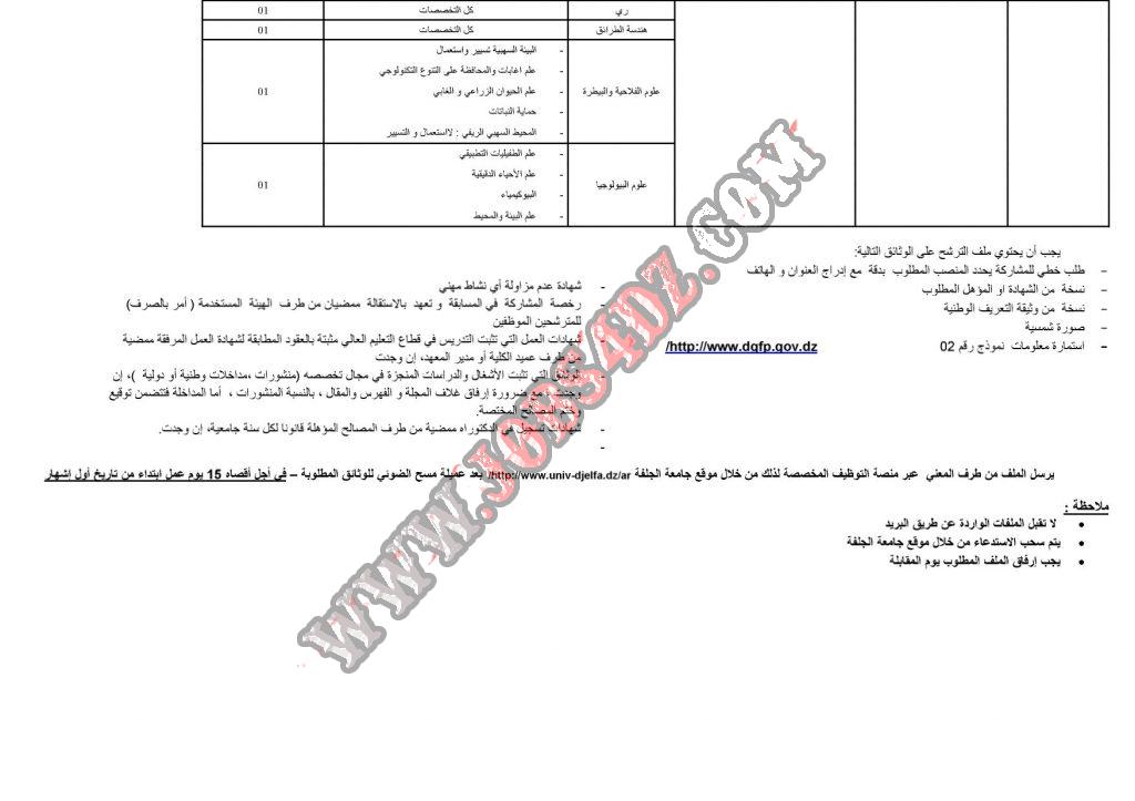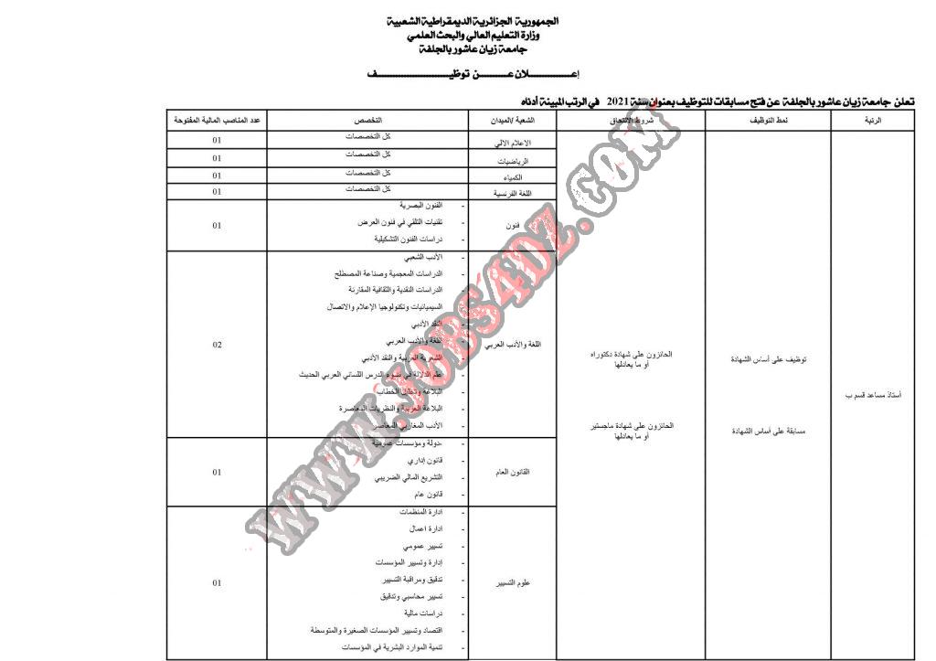 تعلن جامعة زيان عاشور ولاية الجلفة عن فتح توظيف خارجي بعنوان السنة المالية 2021 في الرتبة المبينة ادناه