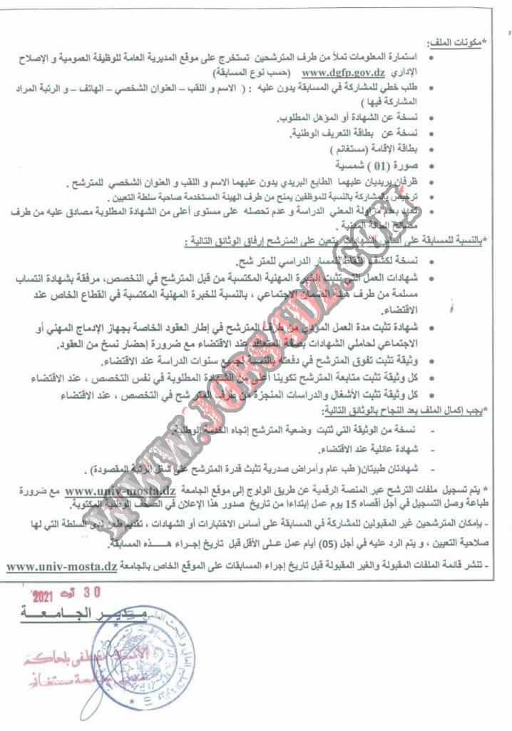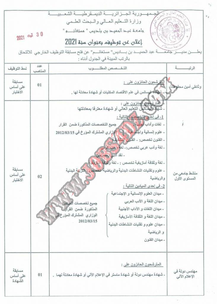 يعلن مدير جامعة عبد الحميد بن باديس مستغانم عن فتح مسابقة التوظيف الخارجي للالتحاق بالرتب التالية