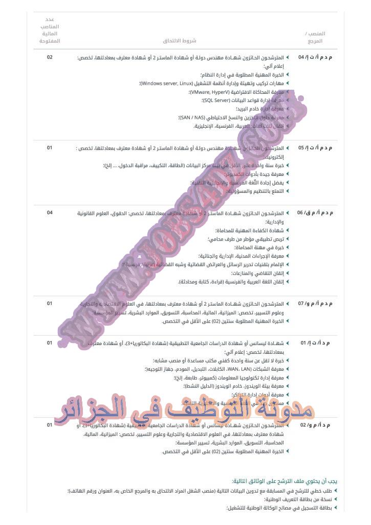 - المترشحون الحائزون على شهادة مهندس دولة أو ماستر في الاعلام الألي