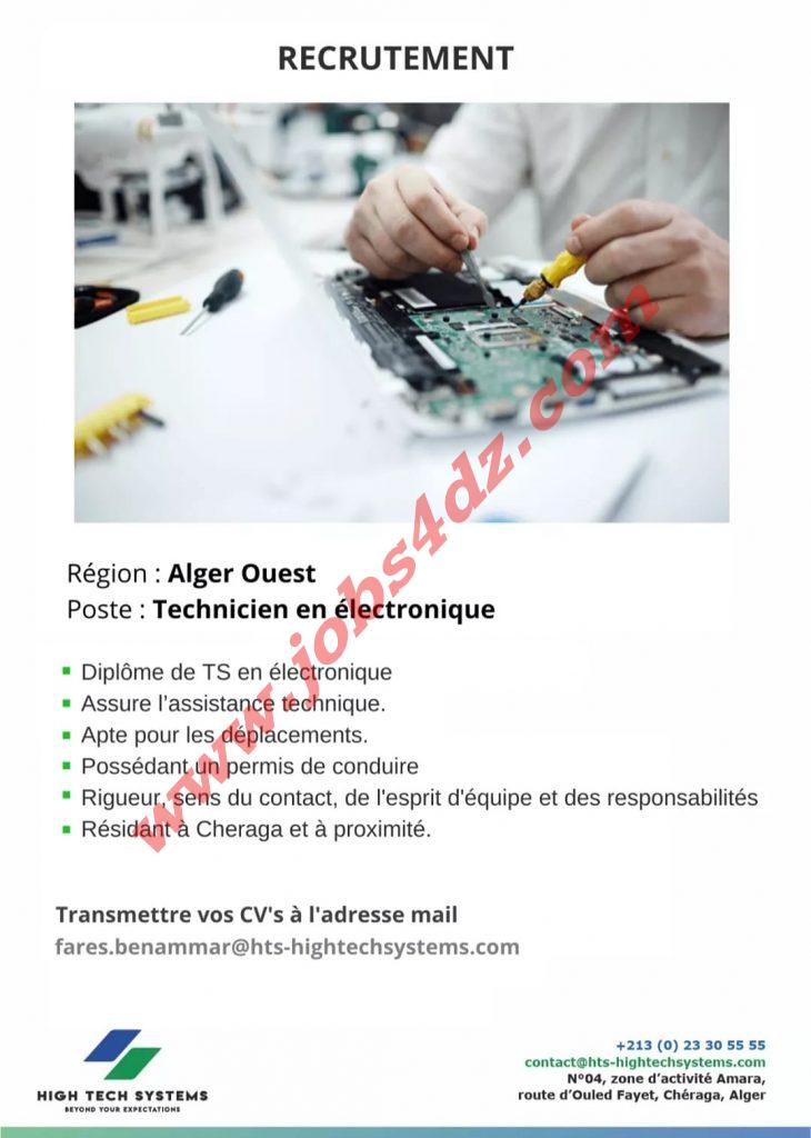 شركة “High Tech Systems” المتواجدة بالشراڨة بالجزائر العاصمة توظف :