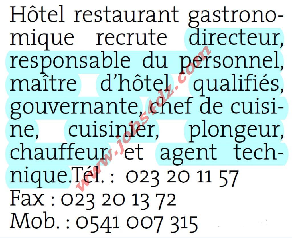 فندق-مطعم بالجزائر العاصمة يوظف :