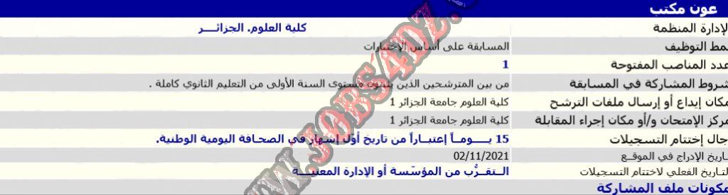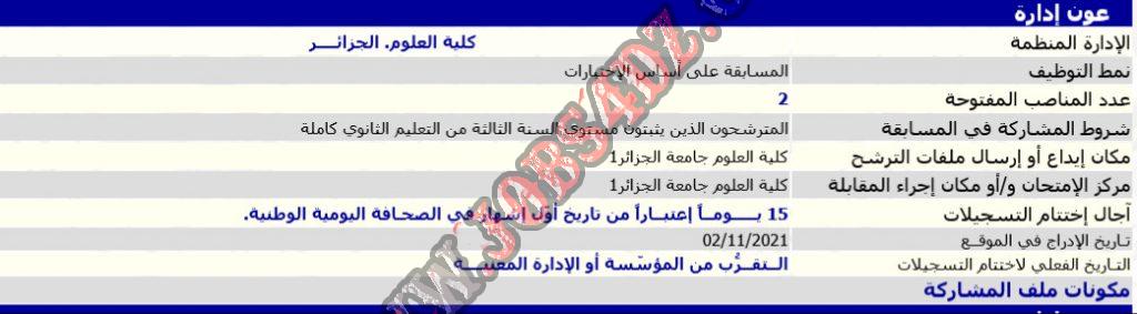 تعلن كلية العلوم جامعة الجزائر1 عن فتح مسابقة توظيف على اساس الشهادة في المناصب التالية