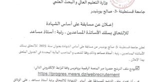 تعلن ادارة المؤسسة الاستشفائية المتخصصة سليم زميرلي الحراش عن فتح مسابقة على اساس الشهادة بعنوان سنة 2021 في الاختصاصات التالية