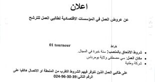 اعلان توظيف بمؤسسة نجمة للحراسة والامن البيض شاركها Facebook Twitter LinkedIn Pinterest عرض عمل على مستوى الوكالة المحلية للتغيل بريزينة ولاية البيضعون أمن : 19 منصبالمستوى الدراسي المطلوب : متوسط فما فوق ads شاركها Facebook Twitter LinkedIn Pinterest