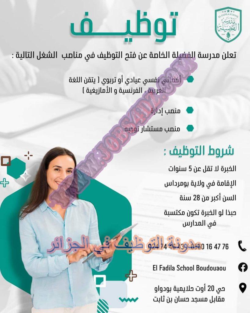 تعلن مدرسة الفضيلة الخاصة عن فتح التوظيف في مناصب الشغل التالية :