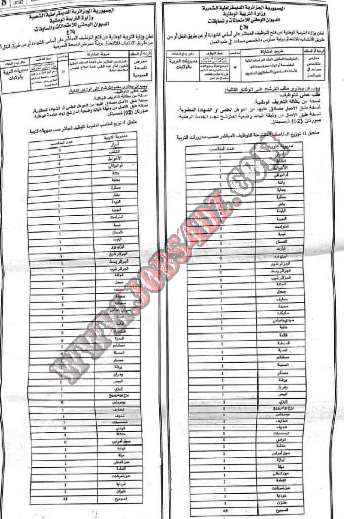 مكان ايداع الملفات بمديريات التربية بالولايات المبينة في صورة الاعلان المرفقة