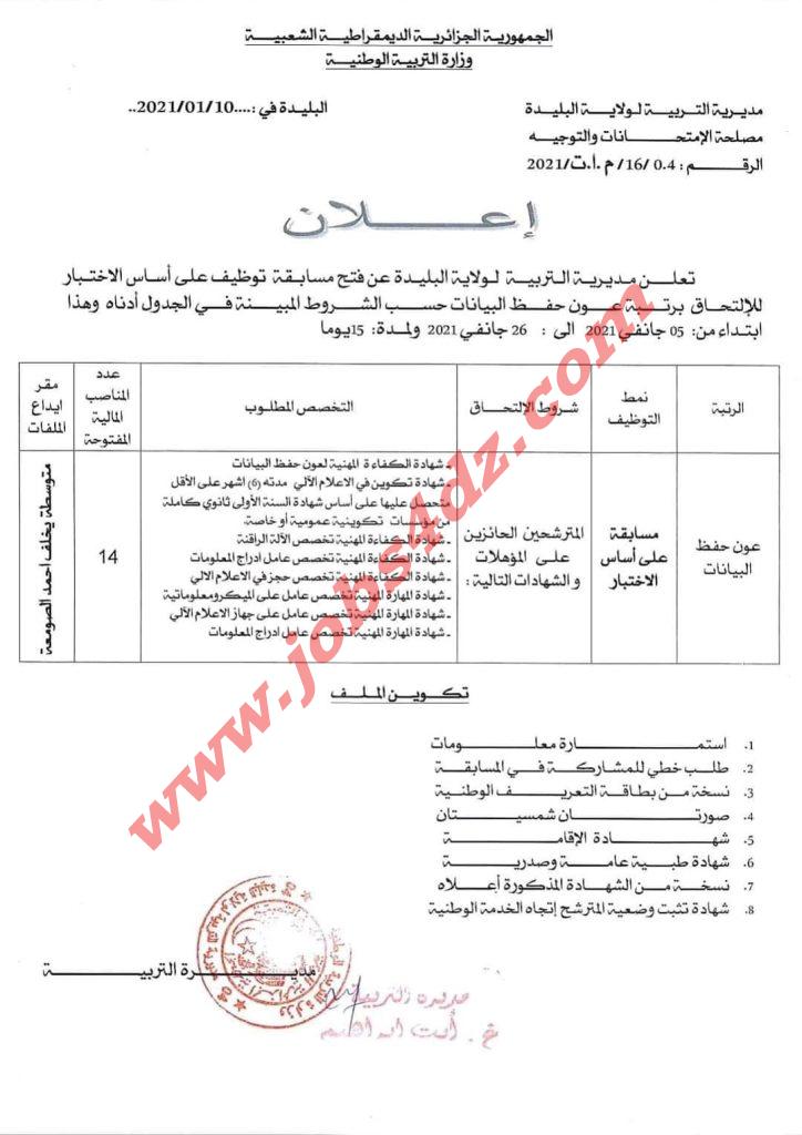 الوسوممدونة التوظيف 2025 مديرية التربية ولاية البليدة مسابقات التوظيف 2025
