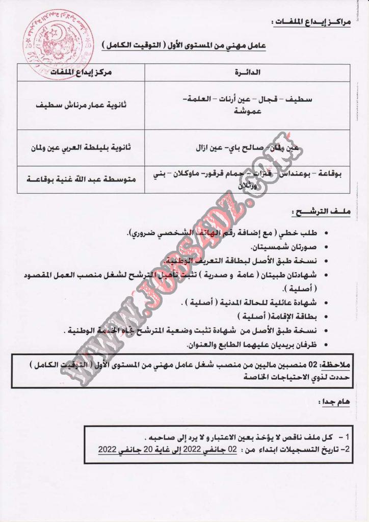 عامل مهني من المستوى الاول (التوقيت الجزئي)