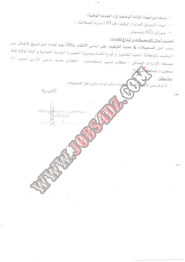 تعلن مديرية التعمير الهندسة المعمارية والبناء لولاية قالمة عن فتح مسابقة توظيف على اساس الاختبار المهني في الرتبة المبينة ادناه