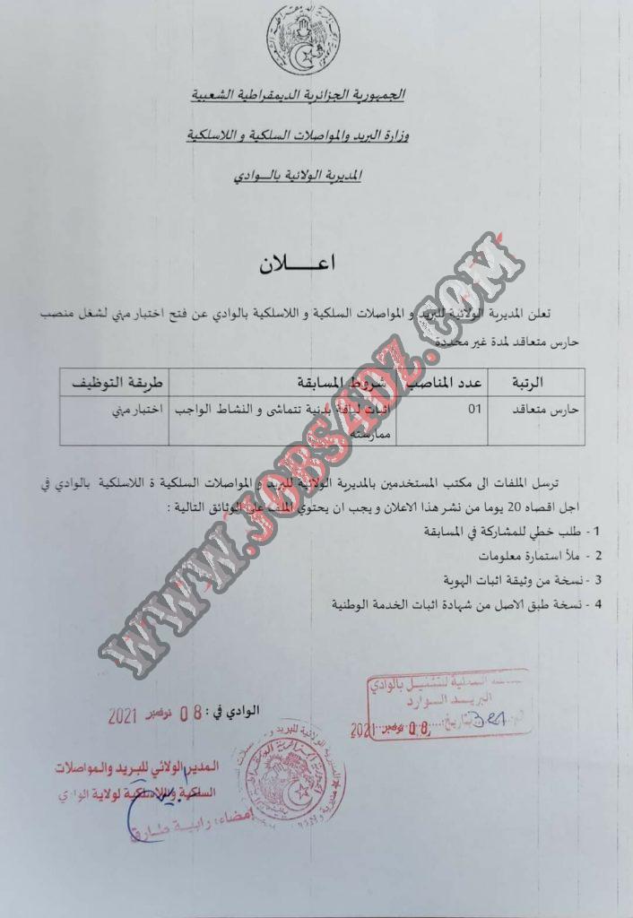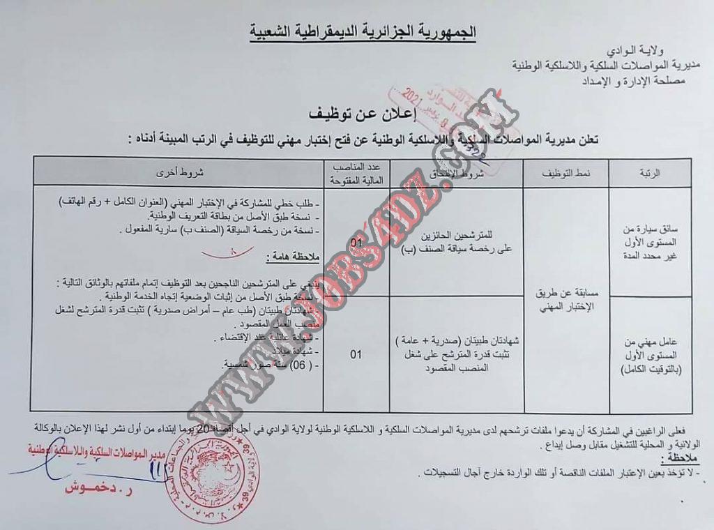تعلن مديرية المواصلات السلكية واللاسلكية الوطنية عن فتح توظيف على اساس الاختبار المهني للتوظيف في الرتب التالية