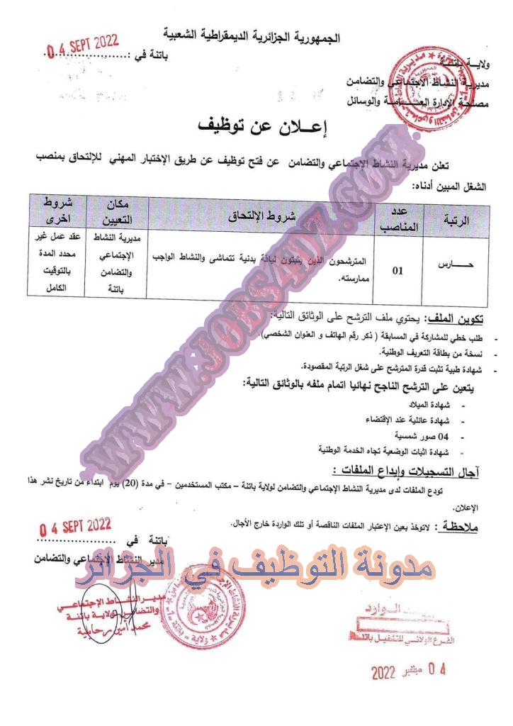 اعلان توظيف بمديرية النشاط الاجتماعي والتضامن باتنة