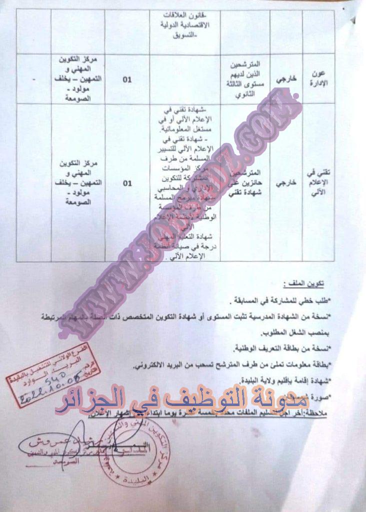 تعلن مركز التكوين والتمهين الصومعة البليدة عن فتح مسابقة توظيف في الرتب المبينة ادناه