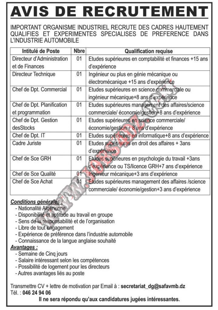 هيئة صناعية هامة تعلن عن حاجته .لموظفين تنفيذيين مؤهلين وذوي الخبرة العالية. متخصصين مفضل في صناعة السيارات