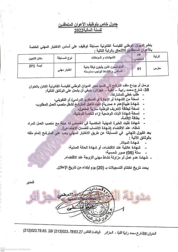 يعلن الديوان الوطني للقياسة القانونية عن فتح مسابقة توظيف على اساس الاختبار المهني في الرتب المبينة ادناه